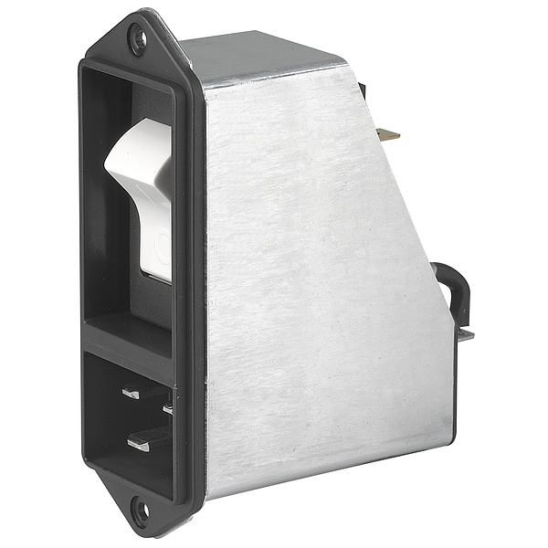 Schurter EF11.ABDBL100C0.0010.01 EF11 Series Power Entry Module with TA45 Series Circuit Breaker, IEC 60320-C20 Inlet, Front Side Screw Mounting, Prewired, TA45: 2 Pole Rocker, 2-Pole Protection, QC Terminals, Black Rocker, Printed -/o, 10 A