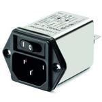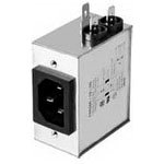 Schaffner EMC FN9244EB-6-06 Power Entry Connector Receptacle - Male Blades - 250 VAC - 6 A - IEC 320-C14 - With Bleed Resistor and Earth Line Choke - 0.250" (6.3mm) Quick Connect - Panel Mount - Flange.